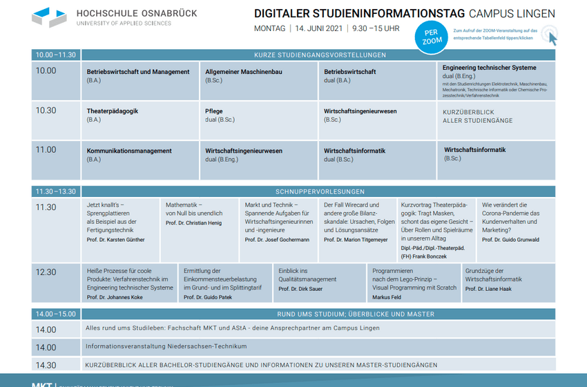 Digitaler Studieninformationstag der Hochschule Osnabrück (Campus Lingen)