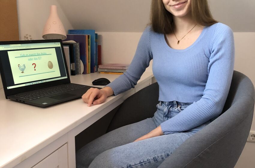 Mit ihrer Präsentation um die Fragestellung "Gab es zuerst das Huhn oder das Ei?" bewies Leonie Raaz aus dem Jahrgang 11 ihr ganzes Präsentationskönnen und qualifiziert sich für das Bundesfinale ...