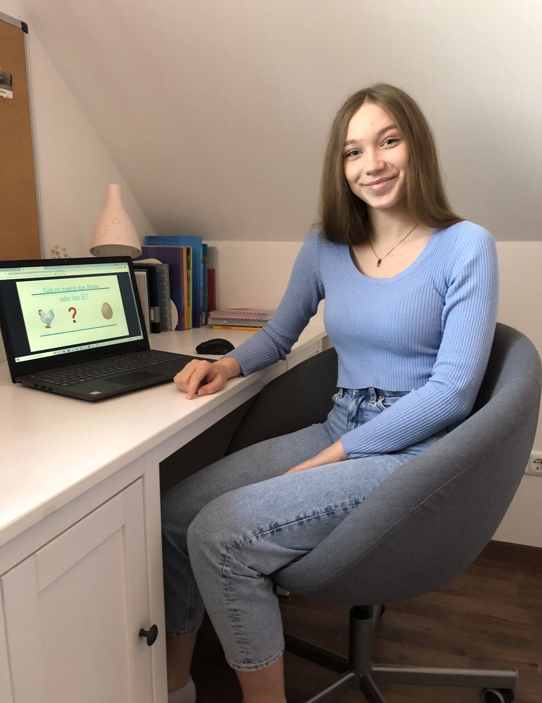 Mit ihrer Präsentation um die Fragestellung "Gab es zuerst das Huhn oder das Ei?" bewies Leonie Raaz aus dem Jahrgang 11 ihr ganzes Präsentationskönnen und qualifiziert sich für das Bundesfinale im Präsentationswettbewerb „Jugend präsentiert“. Neben dem Einzug in das Finale gewinnt Leonie die Teilnahme an der Präsentationsakademie, einem intensiven Präsentationstraining mit professionellen Rhetoriktrainerinnen und -trainern. Mit ihr ziehen aus Niedersachsen zehn Schülerinnen und Schüler in das Bundesfinale ein. Insgesamt hatten sich 4.500 Schülerinnen und Schüler bundesweit und aus deutschen Auslandsschulen am diesjährigen Wettbewerb beteiligt, 350 Schülerinnen und Schüler hatten sich für ein Länderfinale qualifiziert. Um im Länderfinale zu bestehen, war eine Präsentation gefragt, die eine naturwissenschaftlich-mathematische Fragestellung schlüssig und anschaulich beantwortet. Aufgrund der Corona-Pandemie findet der Wettbewerb 2021 wie bereits im Vorjahr digital statt. So wurden auch die insgesamt acht Länderfinale online durchgeführt. Für die Teilnahme am Länderfinale hatten die Schülerinnen und Schüler ihre Präsentationen per Video eingereicht. Aufgabe war es, eine Online-Präsentation zu halten, die neben inhaltlichen Aspekten auch rhetorische Fähigkeiten wie die gekonnte Anwendung von Körpersprache, Stimme und Medieneinsatz unter Beweis stellt. Im Bundesfinale im September 2021 treten 128 Schülerinnen und Schüler an.