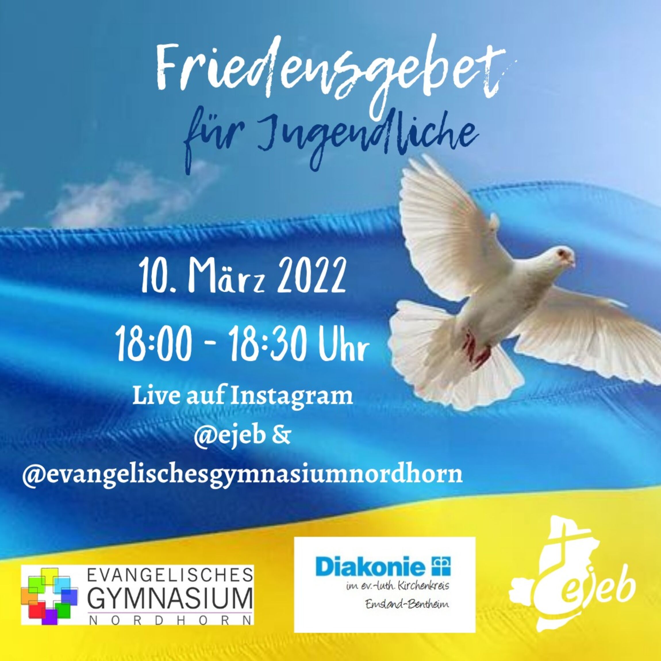 Die aktuellen Ereignisse in der Ukraine erschüttern auch die Jugendlichen Nordhorns und euch als Schüler*innen des EGN. Um sich gegenseitig Trost zu spenden und Mut zu machen, laden euch der Kinder- und Jugendausschuss der Kirchenkreissynode und der Kirchenkreisjugenddienst in Kooperation mit dem Evangelischen Gymnasium Nordhorn und dem Diakonischen Werk Emsland-Bentheim zum digitalen Festgebet ein. Dieses Gebet findet am Donnerstag, den 10. März 2022 um 18:00 Uhr für Jugendliche und andere Interessierte statt und wird aus der Gustav-Adolf-Kirche in Meppen und dem Evangelischen Gymnasium in Nordhorn entsendet. Eine Liveübertragung wird es auf dem Instagram-Kanal des Gymnasiums (@evangelischesgymnasiumnordhorn) geben. Zudem ist geplant, dass der Jugenddienst in Kooperation mit dem EGN und dem Diakonischen Werk Emsland-Bentheim ein sozial-diakonisches Projekt mit dem Titel „500 Pakete für die Ukraine“ initiiert. Dazu werden Jugendliche und Interessierte aufgerufen und eingeladen, mit Sach- und Geldspenden die Menschen auf der Flucht, die an Hunger leiden und dringend Hygieneprodukte für den täglichen Bedarf, sowie Decken, Kissen oder Handtücher brauchen, zu unterstützen. Der Jugenddienst ist bereits im engen Kontakt mit der Caritas in Polen und möchte das Vorhaben konkret unterstützen. Dazu ist geplant, dass Ehrenamtliche aus dem Kirchenkreisjugenddienst und Kirchenkreisjugendwart Philip Krieger zusammen nach Polen fahren, um die Spenden dort zu übergeben und bei der Verteilung zu helfen.