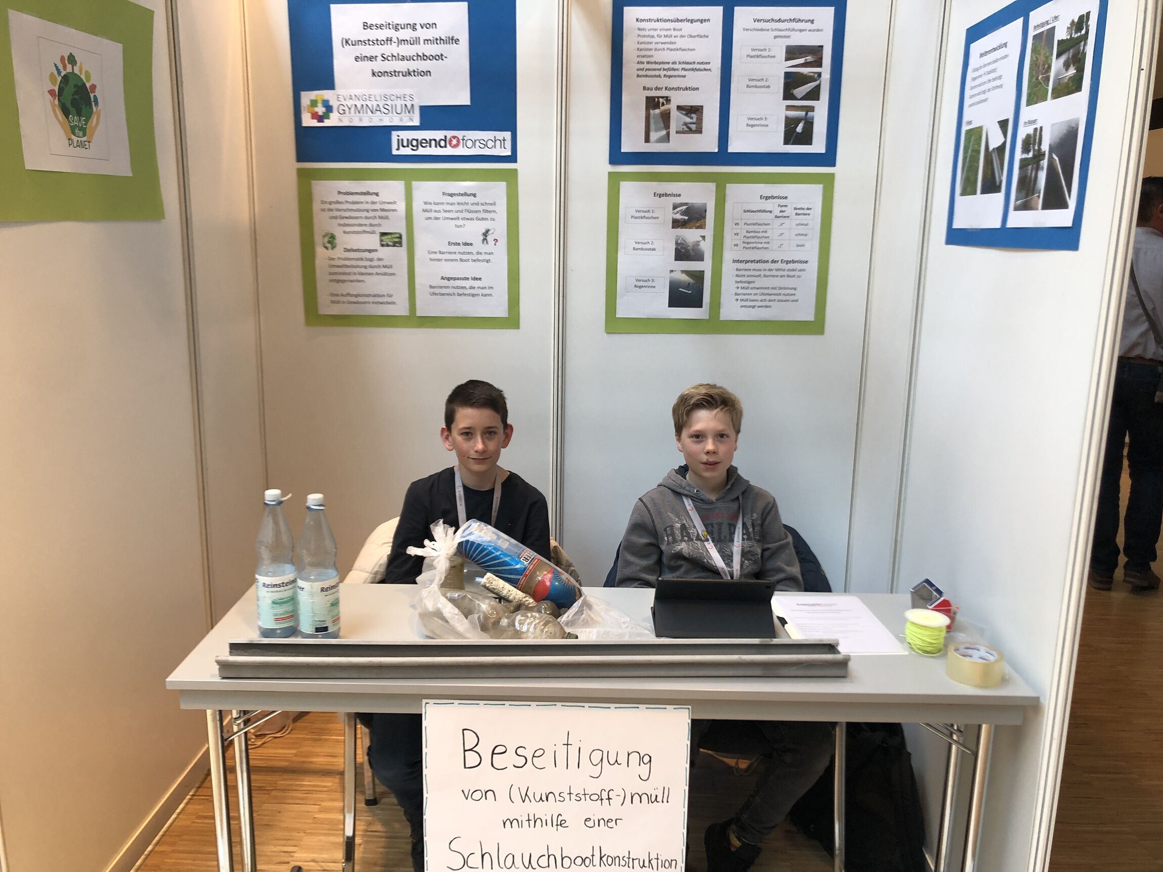 Gegen fünf weitere Projekte sind Bennett und Paul im Bereich Technik angetreten und haben mit ihrem Projekt den 3. Platz (75€) und den Sonderpreis REset Plastic (150€) erhalten.