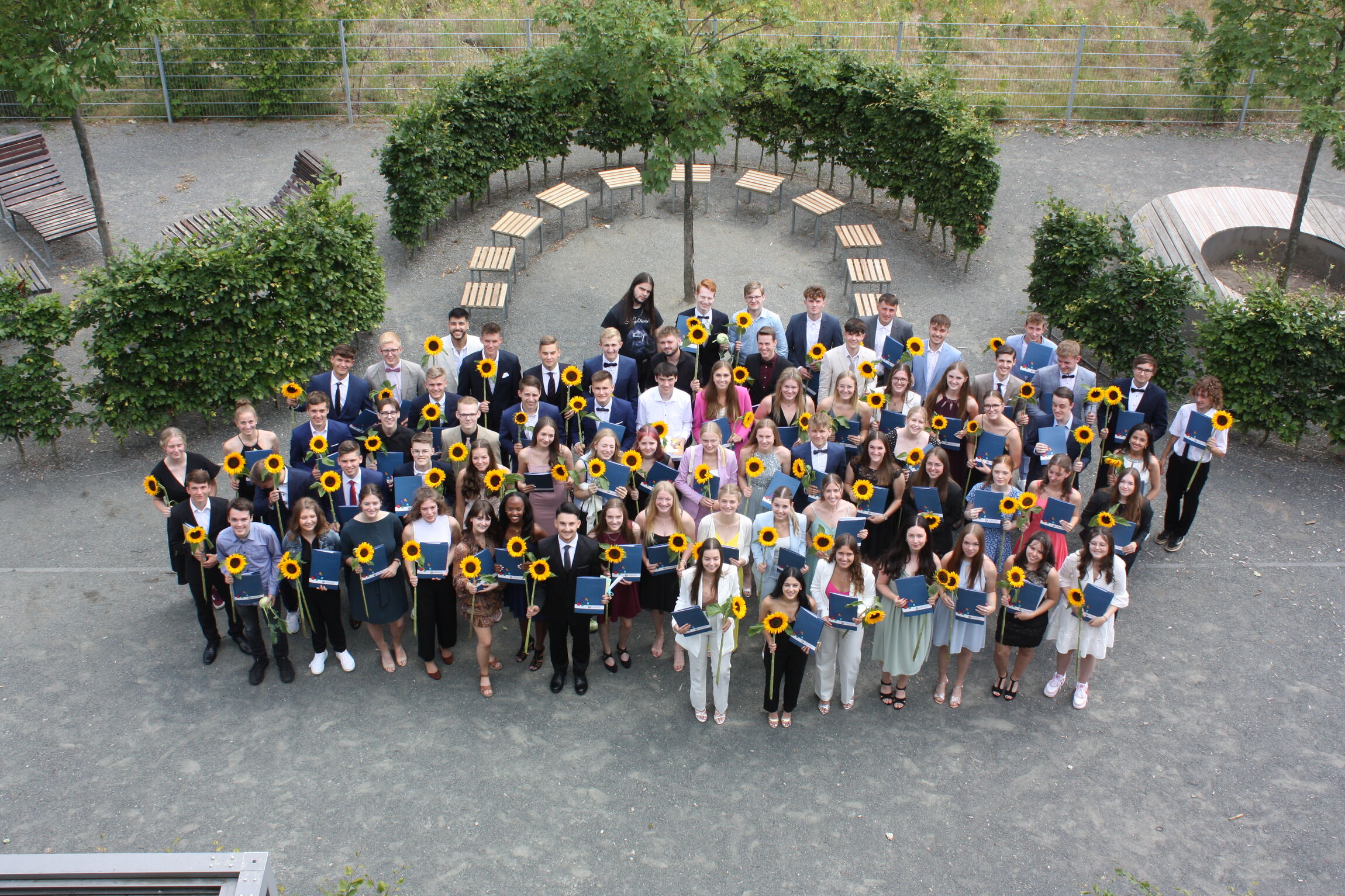 Zum Schluss folgte schließlich die Rede von Schulleiterin Dr. Gabriele Obst. Sie machte die Bedeutung von Bildung in einer von Krieg, Krisen und Katastrophen geprägten Zeit zum Thema ihrer Rede. Dabei blickte Sie zunächst sehr persönlich auf ihre eigene Abiturrede aus dem Jahr 1984 zurück, die sie als Abiturientin im Schatten der Zustimmung des Bundestages zum NATO-Doppelbeschluss gehalten hatte. Damals hätte die Jugendlichen die Angst vor einem Krieg in Europa umgetrieben, heute würden die Jugendlichen in ein Europa, in dem Krieg herrscht, entlassen. Nicht nur damals, sondern auch heute stelle sich bei Jugendlichen die Frage, wozu man in solchen Zeiten Bildung brauche. In Aufnahme eines Gedichts von Bertold Brecht machte sie deutlich, dass die Frage angesichts der katastrophalen Weltsituation durchaus ihr Recht habe und nicht nur von Jugendlichen, sondern von allen am Bildungsprozess Beteiligten gestellt werden müsse. Zu Recht könnten Jugendliche heute den älteren Generationen vorwerfen, dass alle Erkenntnisse der Wissenschaft, die seit den 70er Jahren die heutigen Krisen prognostiziert hätten, nicht zu einer Umkehr geführt hätten. Trotz der Berechtigung dieser Fragen und Vorwürfe sei an einer Bildung festzuhalten, die mehr sei als Qualifikation für Studium und Beruf oder als Eintrittskarte in die Welt der Besserverdienenden missverstanden werde. Es gehe um eine eine Bildung, die den Horizont erweitere, den Kopf und das Herz öffne, damit die Welt verändert werden könne und man sich nicht restlos der Gegenwart und ihren Problemen ausliefere. Sie hoffe, dass die Abiturientinnen und Abiturienten im EGN nicht nur durch den Fachunterricht, sondern ebenfalls im Sozial-Diakonischen Praktikum und im Projekt ‚Herausforderung‘ solche Bildungserfahrungen gesammelt hätten. Ausgestattet mit diesem Fundament appellierte sie an die Jugendlichen sich einzumischen und Verantwortung in der Gesellschaft zu übernehmen: „Ihr seid jetzt dran“! Abschließend bedankte sich die Schulleiterin bei den Eltern, Lehrkräften und Mitarbeitern des EGN, dass sie dabei geholfen haben diese Bildung zu vermitteln. Augenzwinkernd verabschiedete Sie sich dann schließlich mit einem Trockenobst-Riegel von den jungen Erwachsenen, der den „Abschied vom Obst“ etwas versüßen solle.