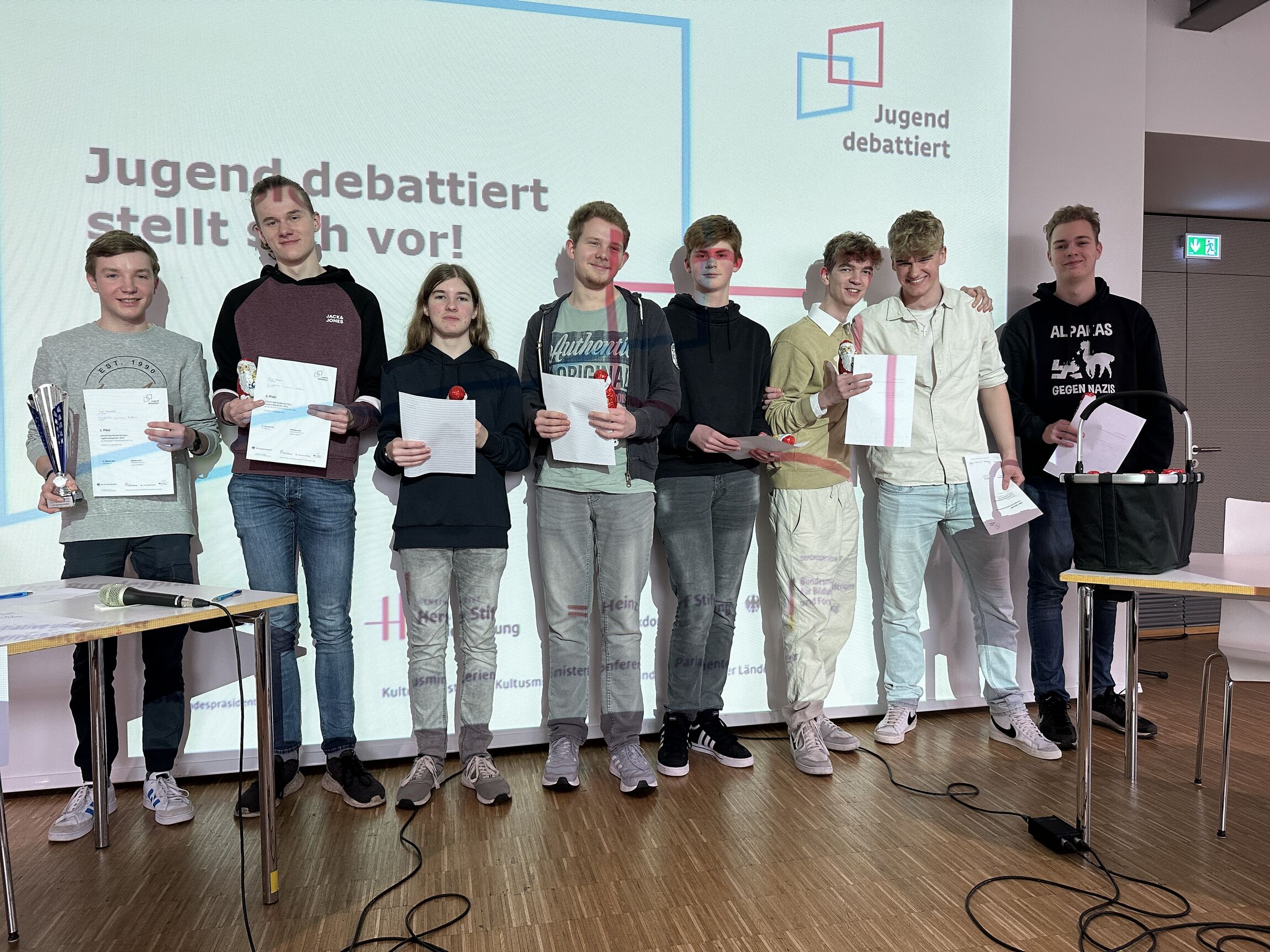 Am Mittwoch, den 25.01.23, geht es für die siegreichen Debattant*innen beim Regionalentscheid in Spelle in die nächste Runde des bundesweit ausgetragenen Wettbewerbs. Wir wünschen unseren Debattanten auf diesem Wege viel Erfolg bei ihren Debatten.