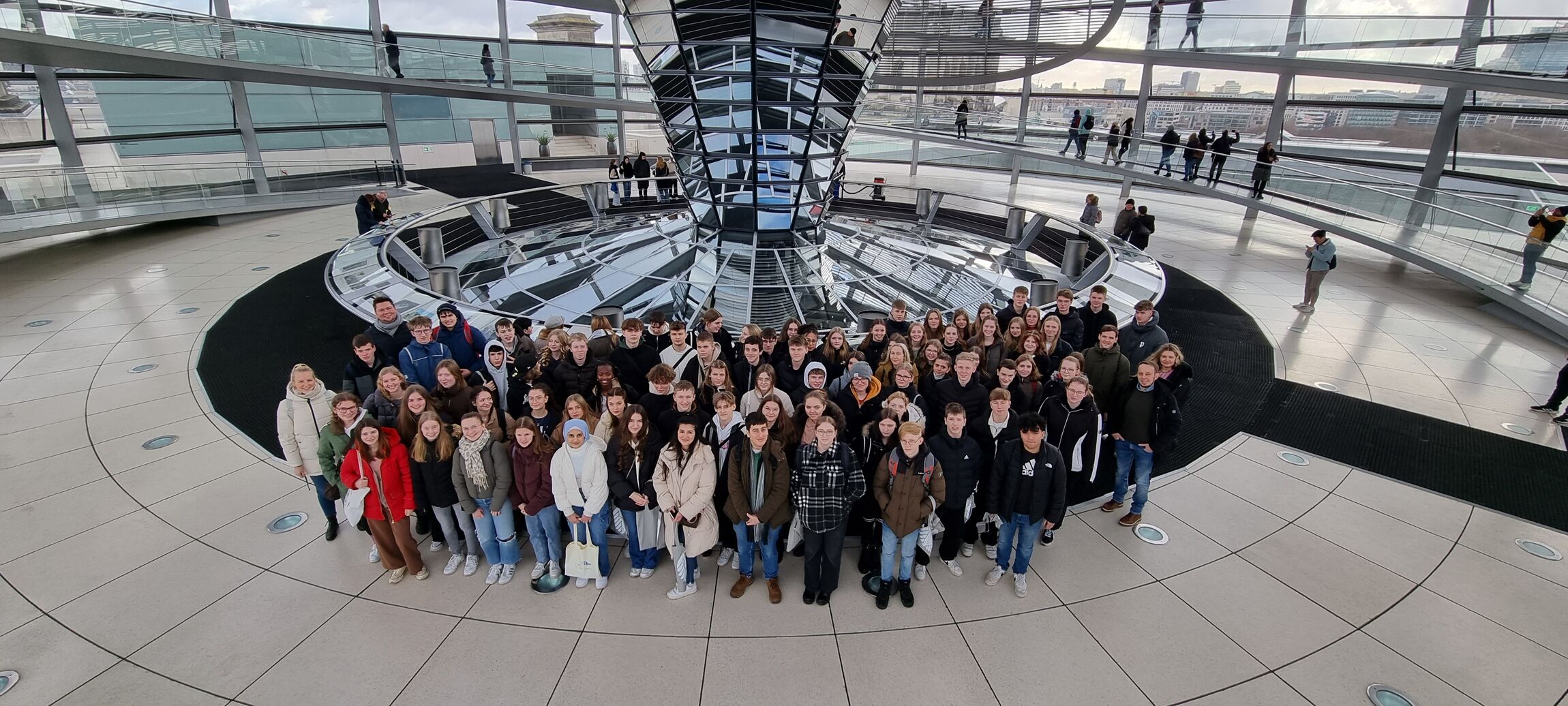Die Jahrgangsfahrt 2023 führte auch dieses Jahr 88 Schülerinnen und Schüler sowie fünf Begleiter in die Hauptstadt der Bundesrepublik. Die Unterkunft das A&O-Hostel am Berliner Hauptbahnhof bot einen guten Ausgangspunkt für die Erkundung der Sehenswürdigkeiten der Stadt.