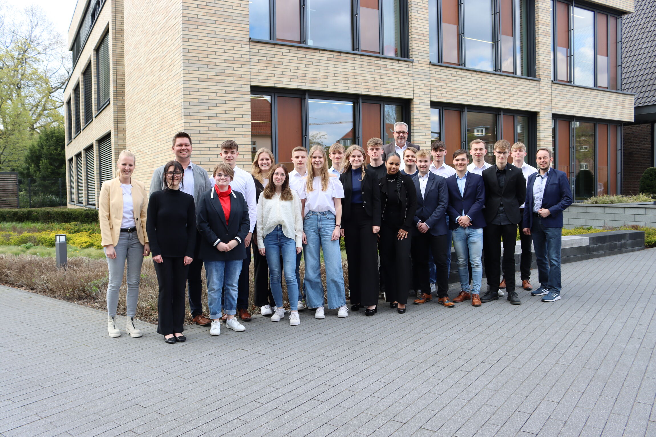 Fünf Tage lang tauchen 19 Gymnasiasten des Evangelischen Gymnasiums Nordhorn (EGN) in die Welt der Unternehmen ein. Es handelt sich dabei um den aktuellen Politik-Leistungskurs des Jahrgangs 12. Beim Management Information Game (MIG), das der Industrielle Arbeitgeberverband Osnabrück–Emsland–Grafschaft Bentheim und das Bildungswerk der Niedersächsischen Wirtschaft gemeinsam veranstalten, agierten die Schülerinnen und Schüler als Jungunternehmer und bekamen dafür viele Tipps von Profis aus der Grafschaft. Dabei ermöglichten zahlreiche Unternehmen wie die Grafschafter Volksbank, die Neuenhauser Gruppe oder auch die Sozialen Dienste Nordhorn durch ihre personelle Unterstützung in Form von Vorträgen und einer Betriebsführung das Eintauchen in die Geschäftswelt. Zum Unternehmeralltag gehörten Entscheidungen über Fertigung, Einkauf und Personal ebenso wie Preiskalkulation und Bilanzierung – und das alles in einem dynamischen Umfeld. „Unternehmensziele“, „Personalmanagement“, „Aktiengesellschaft und Aktionär“ aber auch „Soziale Verantwortung und Wirtschaft“ waren zentrale Themen, mit denen sich die Schüler beschäftigten. Dabei trafen sie, in drei Gruppen gegeneinander konkurrierend, zahlreiche Entscheidungen beispielsweise zu Absatz und Vertrieb, Produktion, Einkauf, Personal und Finanzierung. Parallel wurde ein innovatives Produkt entwickelt und beim Marketingabend vor geladenen Gästen und Sponsoren präsentiert.