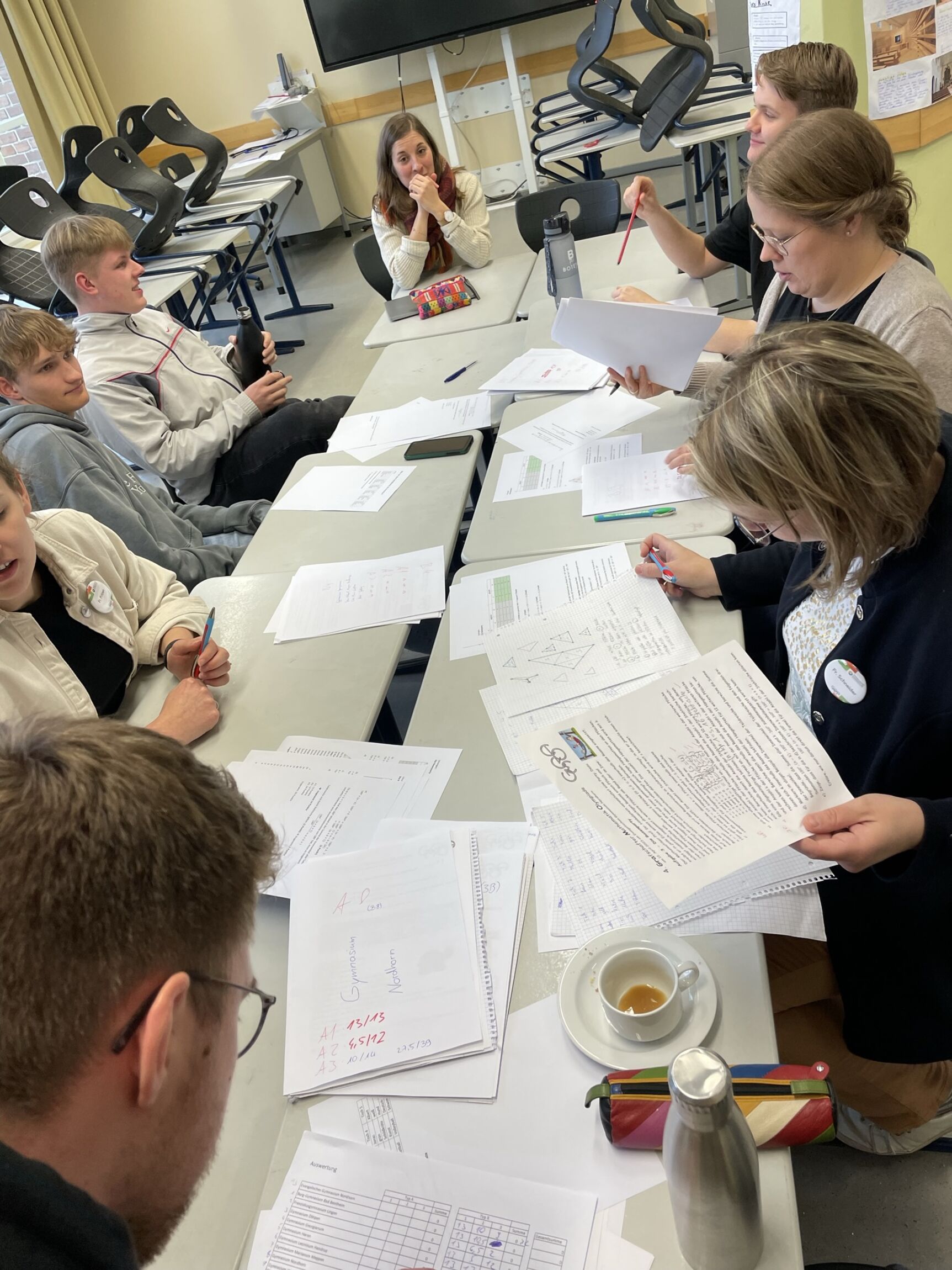 Nach dreijähriger Corona-Pause freuten sich alle Beteiligten, dass endlich wieder die Grafschafter Mathematik Olympiade stattfinden konnte. Diese regionale Mathematik Olympiade, bei der 26 Teams aus 13 Schulen aus der Grafschaft Bentheim und dem Emsland teilnahmen, fand dieses Jahr zum elften Mal statt. Ins Leben gerufen wurde die Olympiade, um mathematikbegeisterten Schülerinnen und Schülern eine Möglichkeit über den Unterricht hinaus zu bieten, sich mit viel Freude mit Mathematik zu beschäftigen. Sie beginnt traditionell mit einem gemeinsamen Mittagessen. Eine Besonderheit dieses Wettbewerbs liegt darin, dass ein Team, bestehend aus vier Schülerinnen und Schülern, die Mathematikaufgaben gemeinsam löst und somit auch die Kommunikation über Mathematik eine wichtige Rolle spielt.