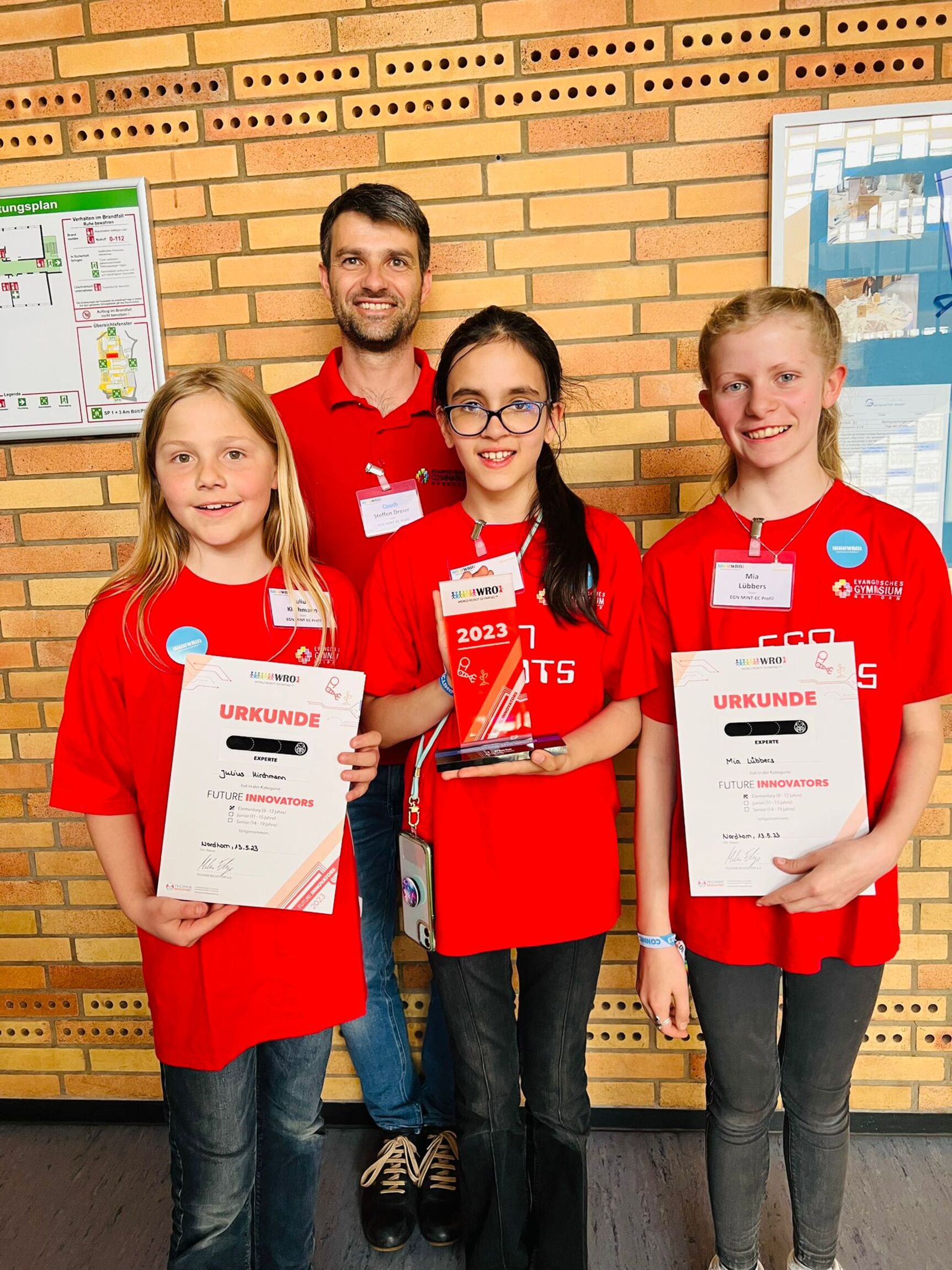 Die World Robot Olympiad ist mit der Kategorie „Future Innovators“ am Samstag, 13. Mai, in den Gewerblichen Berufsbildende Schulen (GBS) ausgetragen worden. Das Team der "Hafeninsel" mit den Teammitgliedern Julius Kirchmann (5b), Mina Chakravarthy (5a), Mia Lübbers (5a), Valentin Pierau (5a) konnte sich durchsetzen und den 1. Platz ergattern. Mit der Platzierung ist außerdem die Weiterleitung in das Deutschlandfinale in Freiburg am 16./17. Juni verbunden.