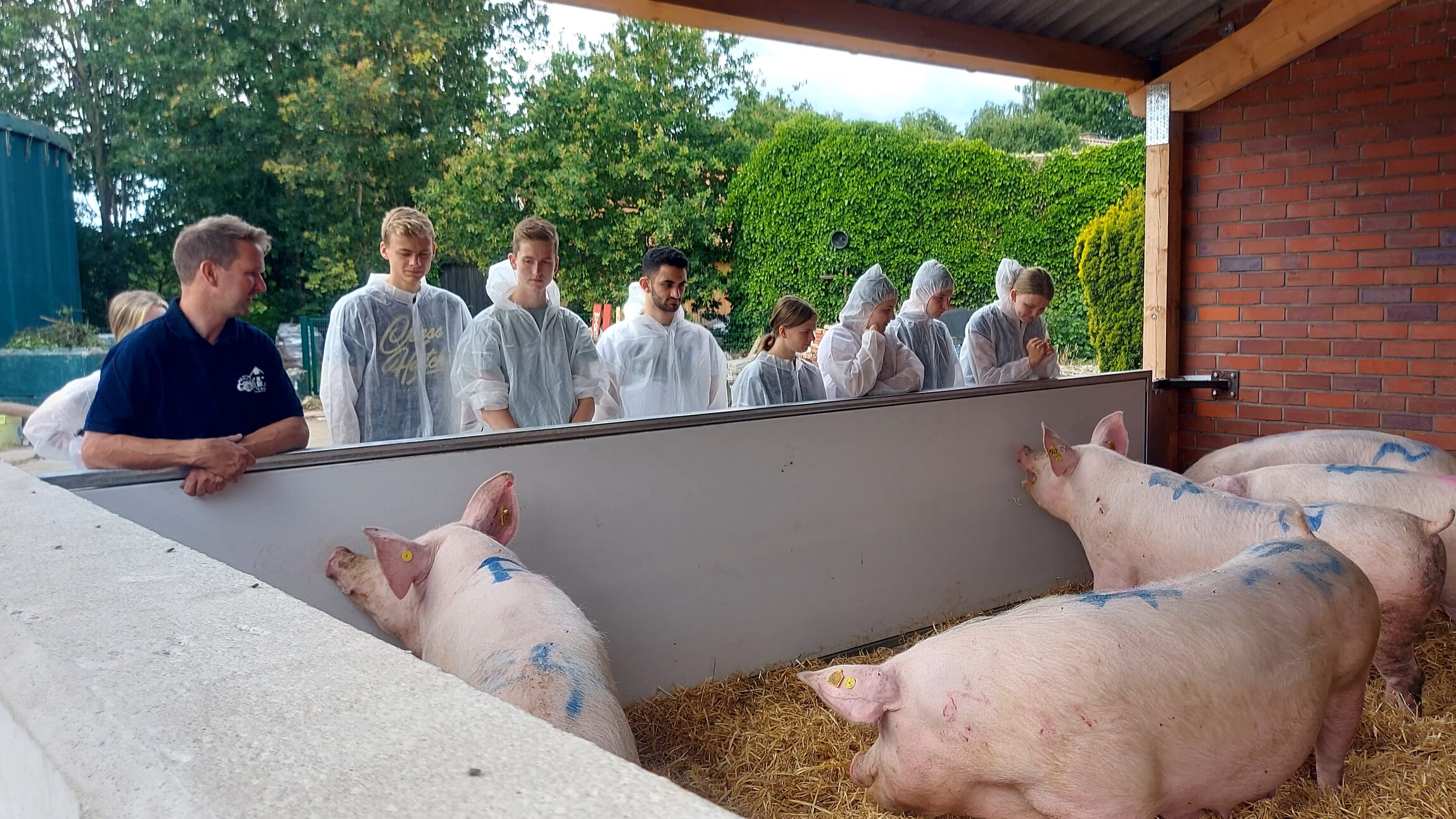 In der letzten Stunde vor den Sommerferien machte der 11er Erdkunde-Kurs unter Leitung von Frau Brockmann eine Exkursion zum Bauernhof der Familie Balder. Wir wurden sehr herzlich empfangen und erhielten einen guten Einblick in die Fleischproduktion unter dem Label der Initiative Tierwohl.