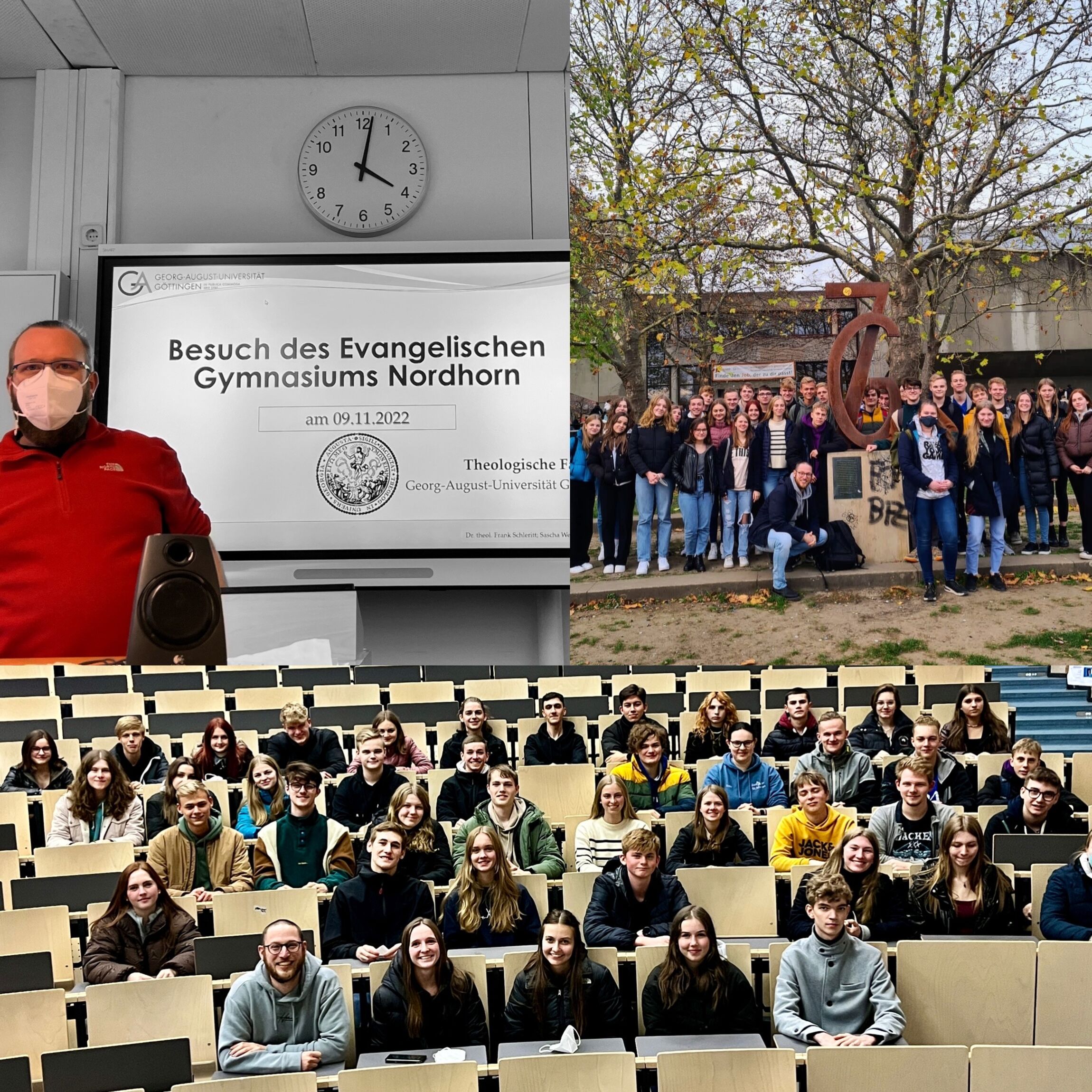 Am Montag und Dienstag intensive Vorbereitung und Organisation am EGN – von Mittwoch bis Freitag Studieren an der Georg-August-Universität Göttingen. Das ist in aller Kürze das Konzept des Studienpraktikums, welches wir jedes Jahr anbieten. Letzte Woche, vom 7.11 – 11.11., konnten Studieninteressierte aus Jg. 11 endlich wieder das Uni-Leben kennenlernen. Vor Studienbeginn sollte man in Erfahrung bringen, ob Umfeld, Arbeitsweisen und Inhalte den eigenen Vorstellungen entsprechen oder auch nicht – so unser Ziel. Das Angebot an Studienfächern wurde in Form von Vorlesungen, Seminaren und Tutorien wahrgenommen. Unsere Schüler:innen waren vielseitig interessiert und gewannen u.a. Einblicke in Agrar- und Geowissenschaften, Medizin, Psychologie, Naturwissenschaften und Wirtschaftswissenschaften, um nur einige zu nennen.