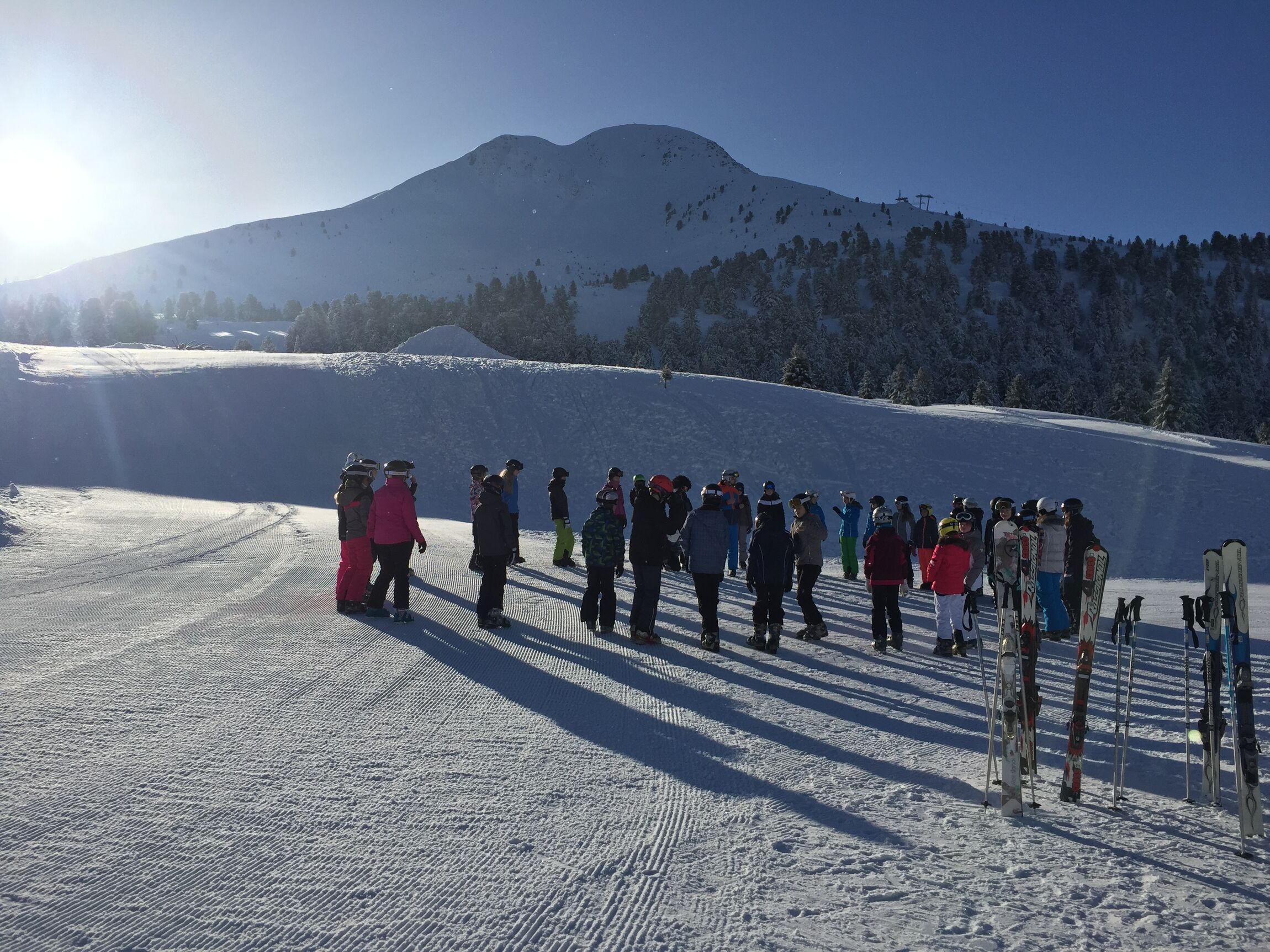 An diesen Morgen wurden wir erneut mit vielen Schlager-Hits geweckt. Nach einem ausgiebigen Frühstück gingen wir gemeinsam auf die Piste. Dort fuhren wir in vier unterschiedlichen Gruppen Ski. In einigen Gruppen wurden große Kurven geübt und in anderen der Kurzschwung. Nach einigen mehr oder weniger spektakulären Stürzen und anderen kleinen Pannen kamen wir trotzdem alle unverletzt zurück zum Hotel.