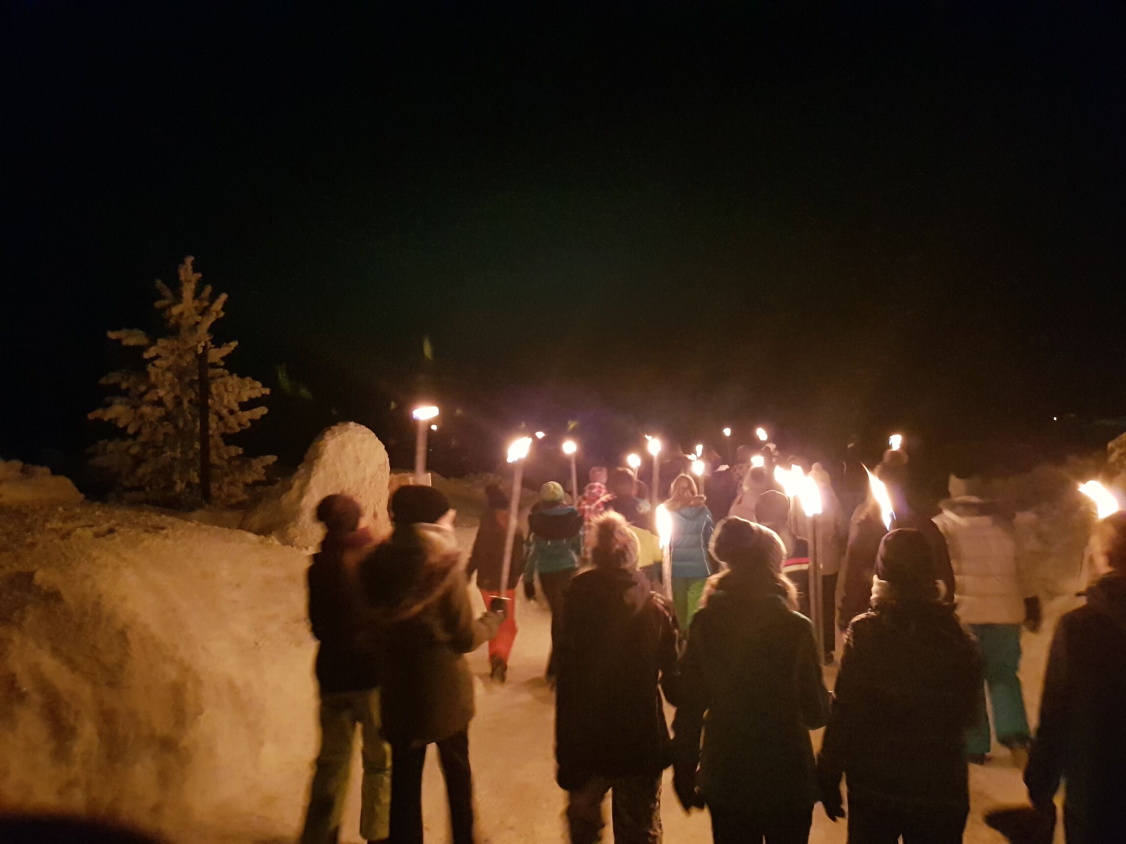 Nachdem wir morgens mit lauter Musik von Herrn Nixdorf und Herrn Kirberger geweckt wurden, haben wir gut gelaunt gegen 8.30 Uhr gefrühstückt. Danach sind wir in den Skikeller gegangen, in die Skischuhe geschlüpft und dann ab auf die Piste. Auf der Piste haben wir unsere Technik zunächst im dichten Nebel weiter verbessert. Heute haben alle die Piste problemlos geschafft. Zum Mittagessen gab es als Vorspeise Suppe und danach Pommes, Hähnchenkeulen und Möhren. Gestärkt und aufgewärmt ging es wieder ab auf die Piste. Dort wurde weiterhin kräftig das parallele Skifahren geübt und später kam sogar noch die Sonne raus. Um 16 Uhr ging es dann runter zum Hotel und ab in die Dusche. Nach zwei Stunden Pause gingen wir in den Essenssaal zum Drei-Gänge-Menü. Direkt danach wurde im Keller die "Hoeneß-Wahl" durchgeführt und im Anschluss sind wir eine Stunde mit Fackeln durch den Schnee gelaufen. Um 22:00 Uhr ging es ab ins Bett und alle waren müde von dem anstregenden Tag.