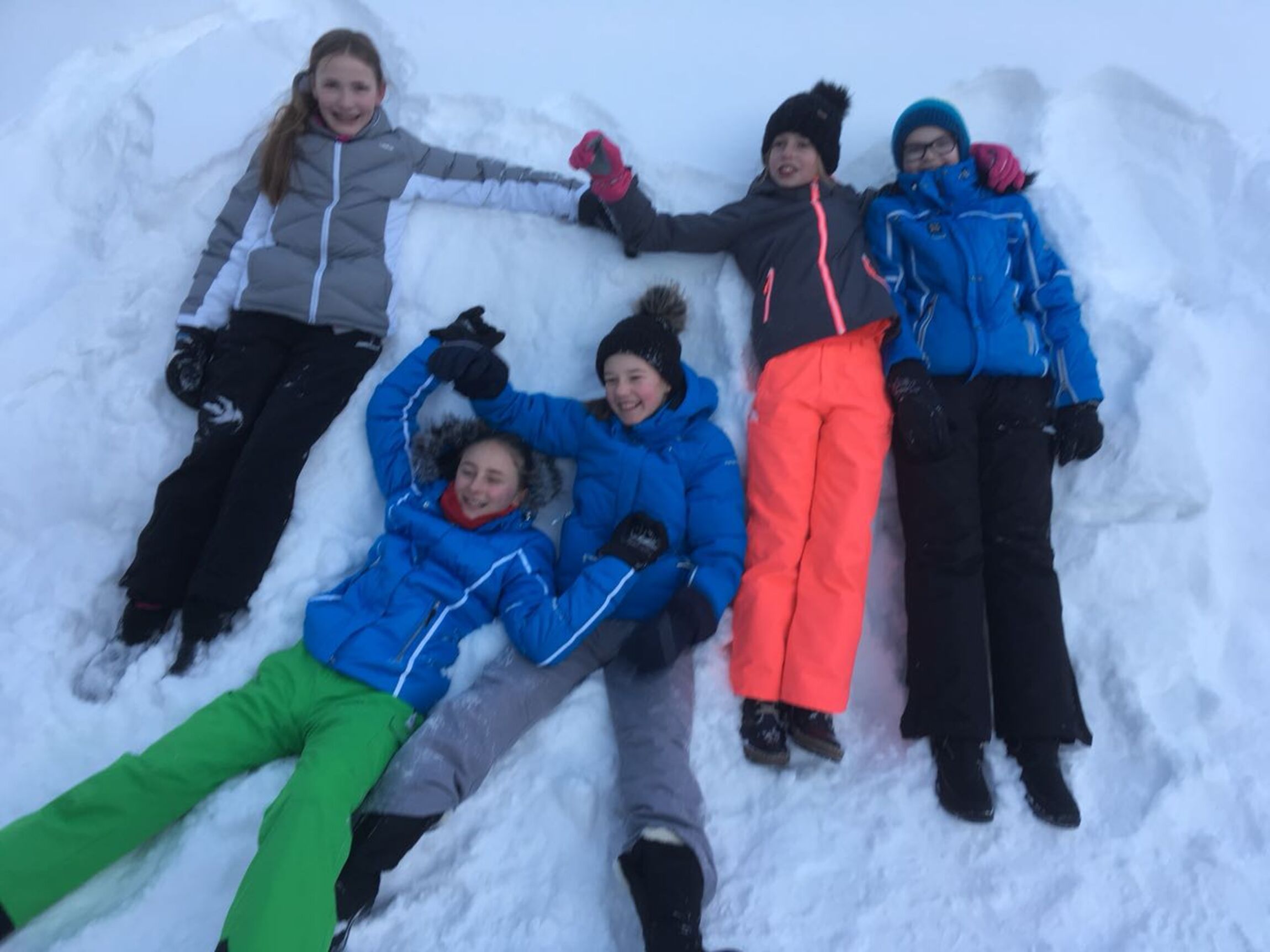 Gegen 12:30 Uhr aßen wir ein leckeres Mittagessen. Nachmittags ging es mit viel Motivation und Power zurück auf die Pisten. Auch heute lief nicht alles ganz reibungslos sowohl auf den Pisten als auch bei den Liften ab, aber kleine Pannen gehören dazu. Am späten Nachmittag kamen alle heile wieder unten an. Doch dann erfuhren wir, dass wir noch einen kleinen Spaziergang vor uns hatten, damit die Lehrer Zeit hatten, um die Aprés-Ski-Party zu organisieren. Als wir wieder am Hotel ankamen, überraschten sie uns mit einem süßen Getränk und Musik. Zusammen versuchten wir alle zusammen einen Hügel hinunter zu rutschen, doch dieses klappte nicht und alle rollten sich den Hügel herunter.