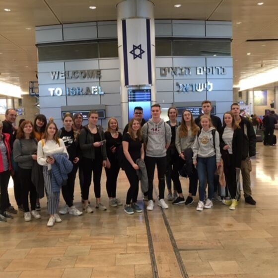 Nach langen drei Monaten warten, war es nun endlich soweit - das evangelische Gymnasium fliegt zum Gegenbesuch nach Haifa. Um halb 2 in der Nacht begann bei strömenden Regen und Kälte die Reise vom Bahnhof Nordhorn, zum Glück war der Bus nach Amsterdam Schiphol pünktlich. Nach zweieinhalb Stunden kamen wir am Flughafen an und haben erstmal ein ‚abwechslungsreiches’ (siehe Bild) Frühstück zu uns genommen. Danach ging es dann auch schon mit der Kofferabgabe und den Sicherheitschecks los. Glücklicherweise sind wir alle problemlos durchgekommen. Um 6:15 Uhr fand das Boarding statt und um 6:50 Uhr saßen wir schließlich im Flugzeug. Nach 10 Minuten herumfahren konnten wir nun endlich den schönen Sonnenaufgang aus der Luft genießen. Um 11:45 Uhr unserer Zeit konnten wir das erste Mal einen Blick auf Tel Aviv erhaschen und waren alle ziemlich aufgeregt. Schlussendlich landeten wir sehr sanft an dem Ben Gurion Flughafen und trafen dort auf einen Teil der israelischen Schüler. Zusammen gingen wir in einen kleinen, wunderschönen Park in Nähe des Flughafens und nahmen eine leckere Stärkung zu uns, bevor wir mit dem Zug zwei Stunden nach Haifa weiter fuhren. Die Zugfahrt war ein kleines Abenteuer: rappelvoll und sehr schnell. Dort hießen uns dann endlich alle Schüler willkommen und fuhren mit uns nach Hause um unser Gepäck zu verstauen. Dort hatten wir bis 18:00 Uhr der neuen Zeit unsere Sachen zu verstauen und die Familie kennen zu lernen. Anschließend trafen wir Schüler uns alle zusammen in der Einkaufsmal, um Purimkostüme zu kaufen und verbrachten den Abend miteinander. Nach einem ausgiebigen Abendessen konnten wir dann endlich nach einem langen und anstrengenden, aber dennoch sehr schönen Tag schlafen gehen.