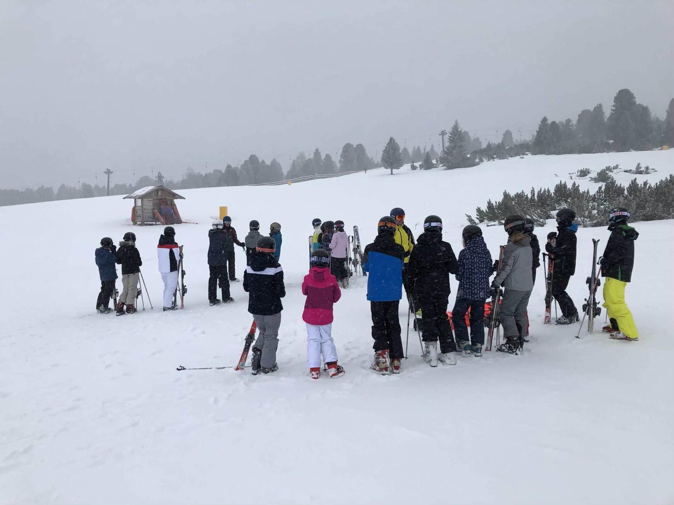 Wir sind am Dienstag um 19:30 Uhr mit dem Bus losgefahren, nachdem wir von Frau Obst den Reisesegen erhalten haben. Zunächst fiel es vielen von uns schwer, im Bus einzuschlafen. Nach Mitternacht waren viele dann aber doch sehr müde und ein paar haben dann leider den Anblick der beleuchteten Allianzarena verschlafen. Am nächsten Tag haben alle aus dem Fenster auf die schneebedeckten Berge geschaut und darauf gewartet, dass wir endlich ankommen. Als wir angekommen sind, haben wir erst einmal unsere Sachen auf die Zimmer gebracht und nach zehn Minuten hat Herr Nixdorf dann schon seine Skischlager abgespielt. Nach dem Frühstück ging es zur Anprobe der Skischuhe und Skier. Nach dem Mittagessen ging es dann auch schon zum ersten Skifahren auf die Skipiste. Alle hatten viel Spaß und haben große Fortschritte gemacht. Zum Abendbrot gab es Suppe und danach haben wir im Keller Tischtennis gespielt und fielen erschöpft ins Bett.