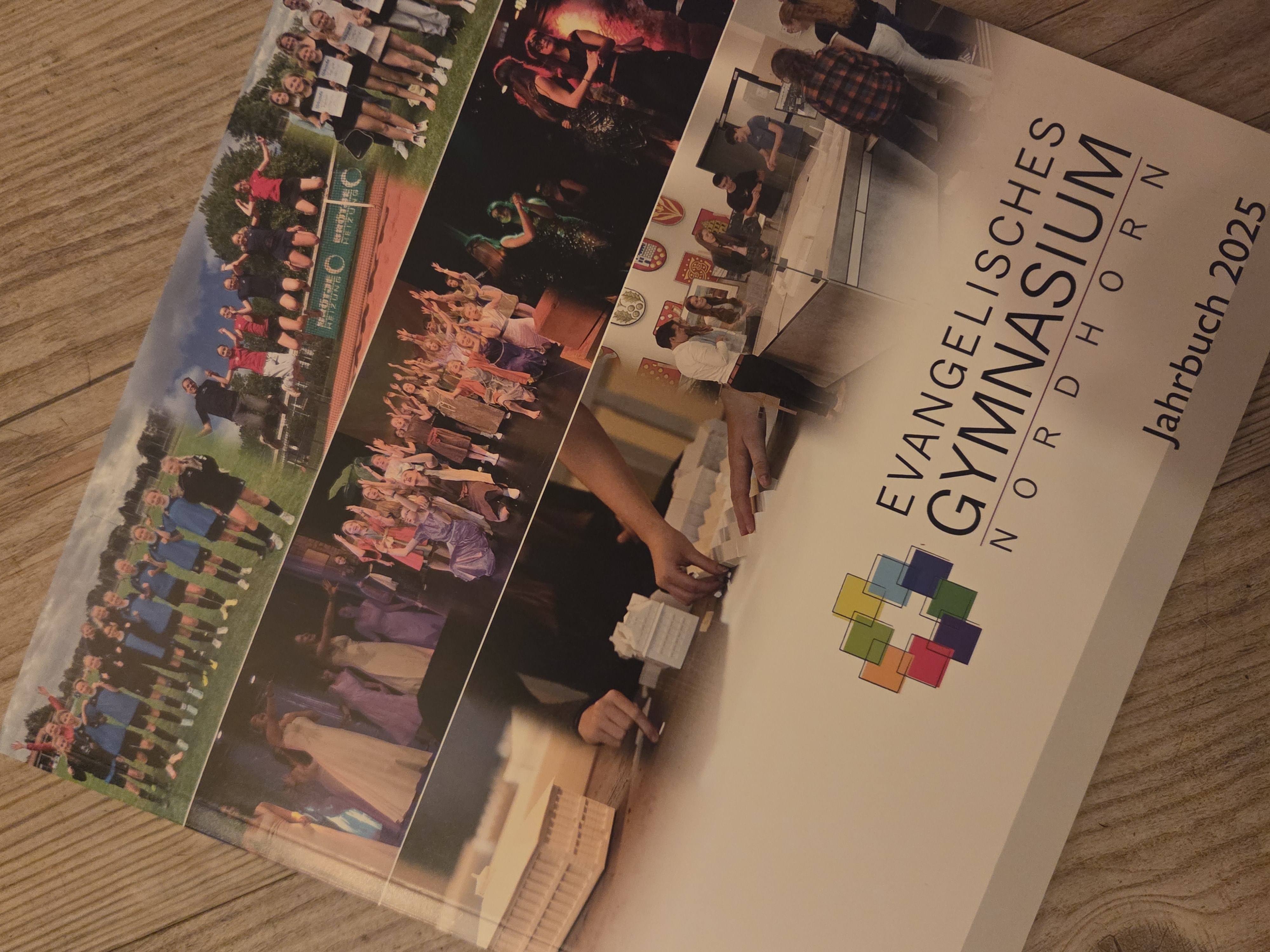 Das Jahrbuch 2025 wird ab Montag, den 15.12.2025 druckfrisch vorliegen – 100 Seiten aus dem Schulalltag des EGN. Berichte aus den verschiedenen Fächern, Besonderheiten des Jahres sowie persönliche Vorstellungen und Verabschiedungen werden in dieser Sammlung vereint sein. Das Buch kann ab Montag in den großen Pausen im Foyer für 8 € erworben werden. Gerne passend mitbringen. Nur solange der Vorrat reicht!