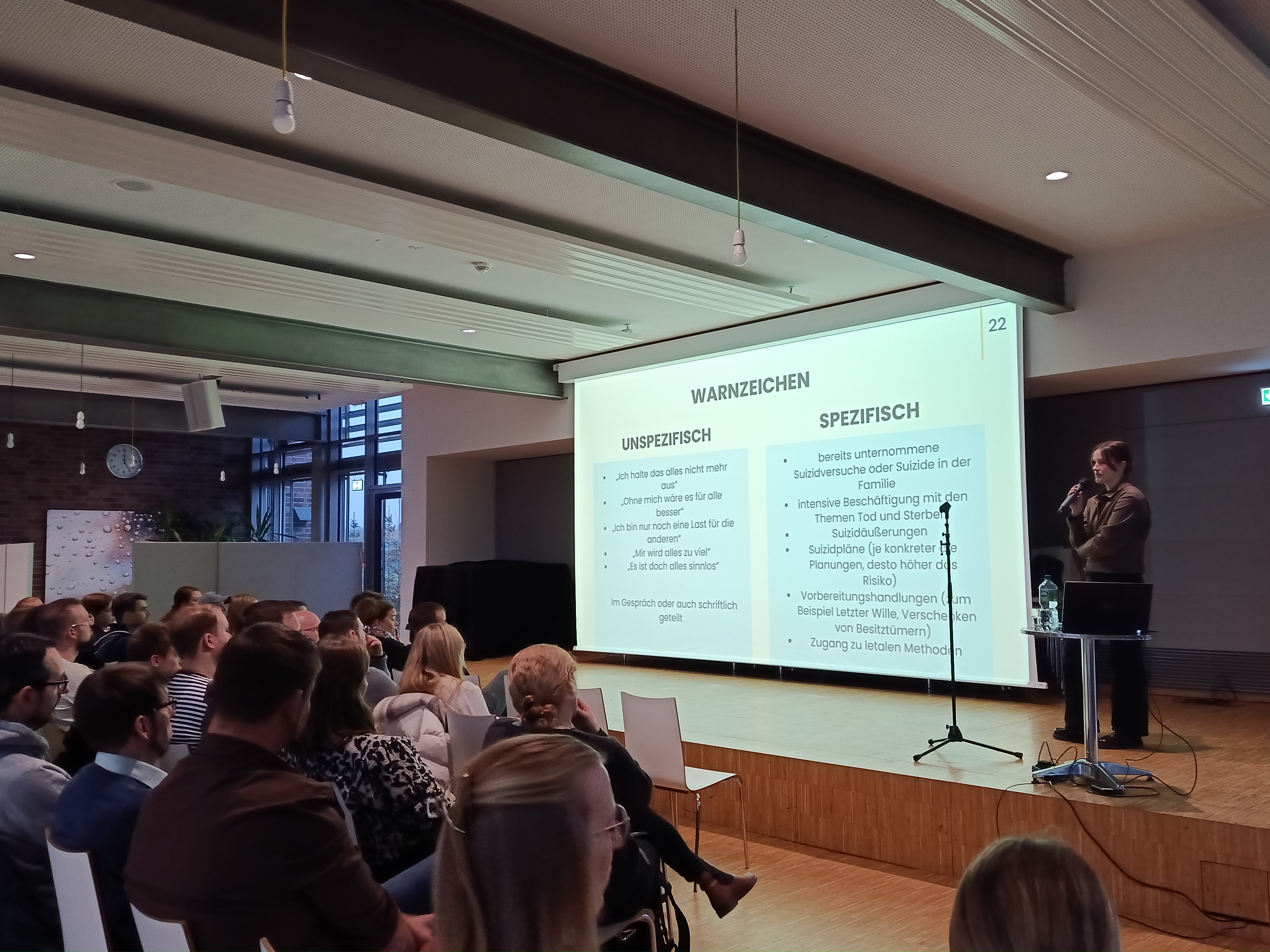 Am letzten Mittwoch fand in der EGN Mensa eine Fortbildung zum Thema „Umgang mit Depressionen, selbstverletzendem Verhalten und Suizidalität“ für das gesamte Kollegium statt. Als Referentin für dieses aktuelle Thema konnten wir die Psychologin Anna Kirchhoff vom Eylarduswerk gewinnen.
