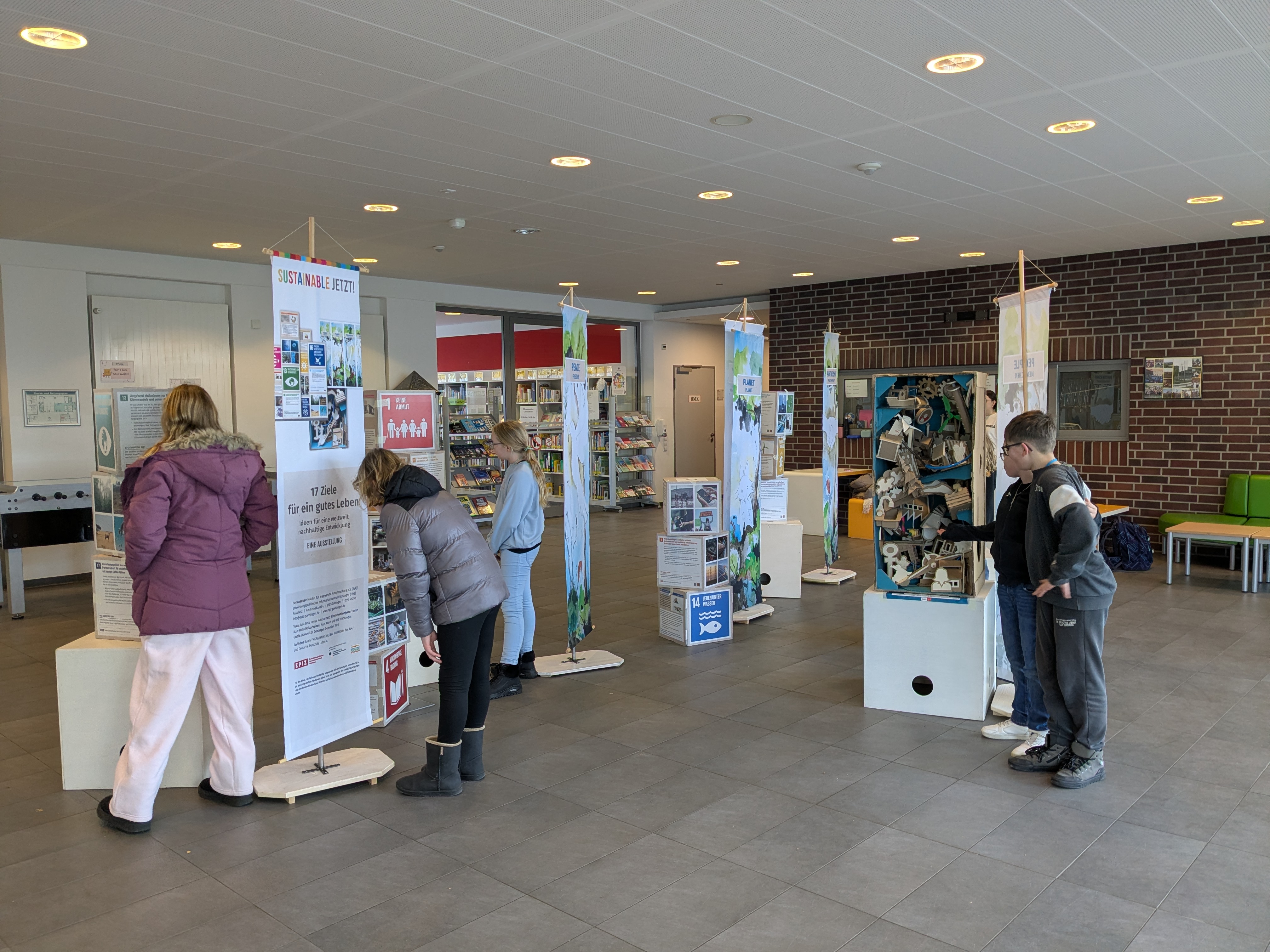 Das Besondere an dieser Ausstellung ist der Fokus auf das eigene Handeln. Es geht nicht nur darum, Probleme aufzuzeigen, sondern Lösungen zu finden. Im Unterricht wollen wir dazu gemeinsam mit allen Klassen sprechen und arbeiten. Die Ausstellung ist noch bis zum 10. März zu sehen. Wir laden nicht nur alle Klassen herzlich ein, die Stationen im Unterricht zu besuchen, sondern auch Eltern und Interessierte, die sich selbst ein Bild machen möchten. Ein herzliches Dankeschön geht an das Team von Sustainable Jetzt und das Entwicklungspolitische Informationszentrum Göttingen für die Bereitstellung der Materialien.