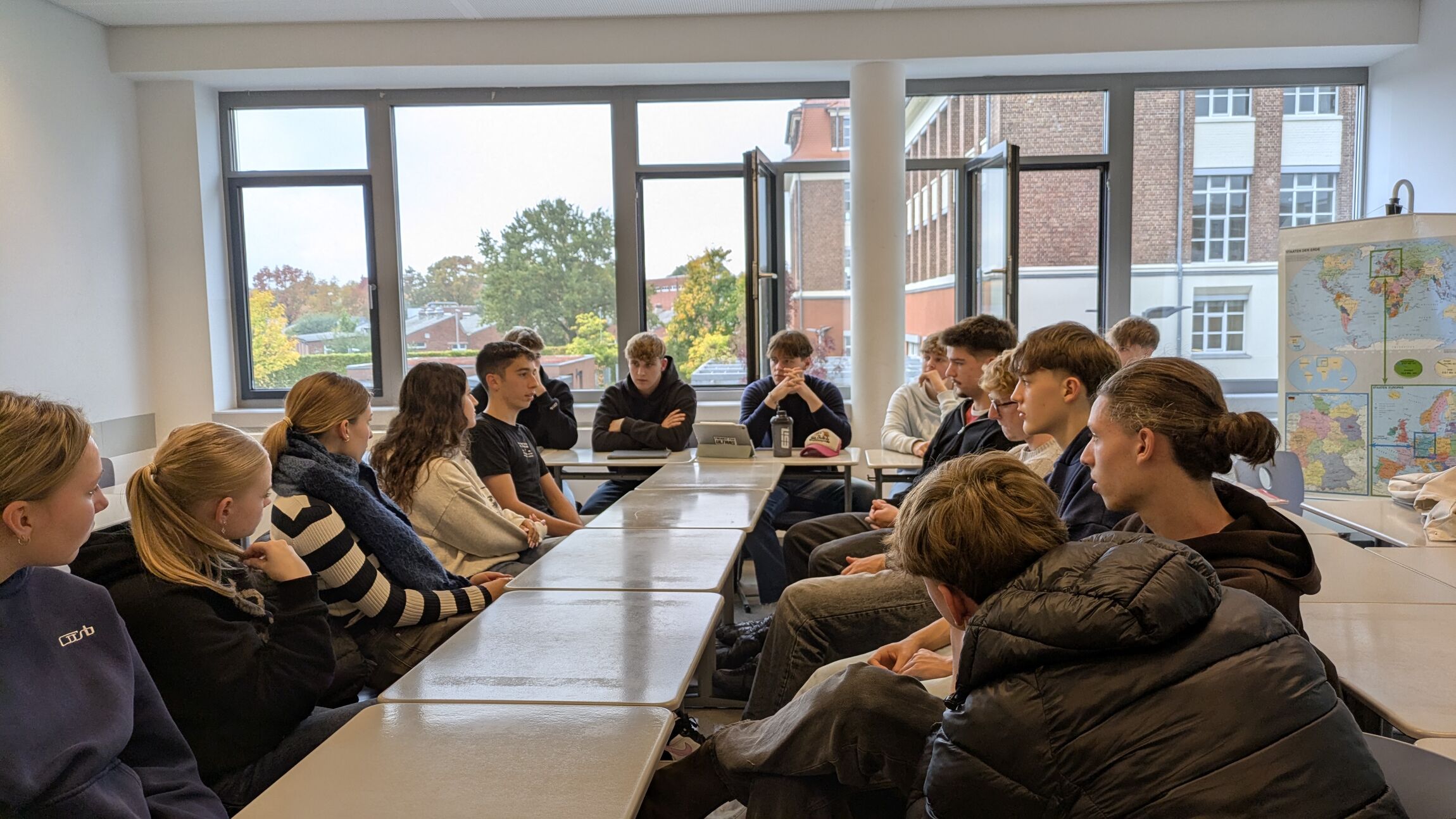 Ein besonderes Highlight war ein Austauschgespräch mit Schülerinnen und Schülern des 12. Jahrgangs, bei dem es zu angeregten Diskussionen über kulturelle Gemeinsamkeiten und Unterschiede kam. Zum Abschluss ihrer Nordhorner Woche verabschiedeten wir die beiden zu Beginn der Herbstferien nach Berlin, wo sie die zweite Hälfte ihres Aufenthalts verbrachten.