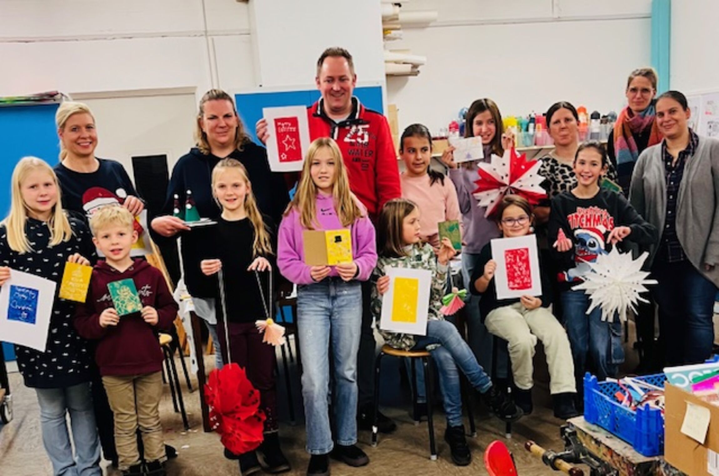 Am vergangenen Freitagnachmittag fand das Eltern-Kind-Angebot „Adventswerkstatt“ in der Kunstschule der städtischen Galerie in Nordhorn statt. Hier haben die Eltern und Kinder die Gelegenheit genutzt, aus Wolle, Papier, Pappe und Druckfarbe Weihnachtskarten und individuellen Christbaumschmuck zu basteln. Besonders beliebt war die Herstellung von Weihnachtskarten mithilfe einer Druckmethode. Am Ende des Angebotes sind zahlreiche Kunststücke entstanden und die Eltern und Kinder hatten viel Spaß und Freude an deren Gestaltung.