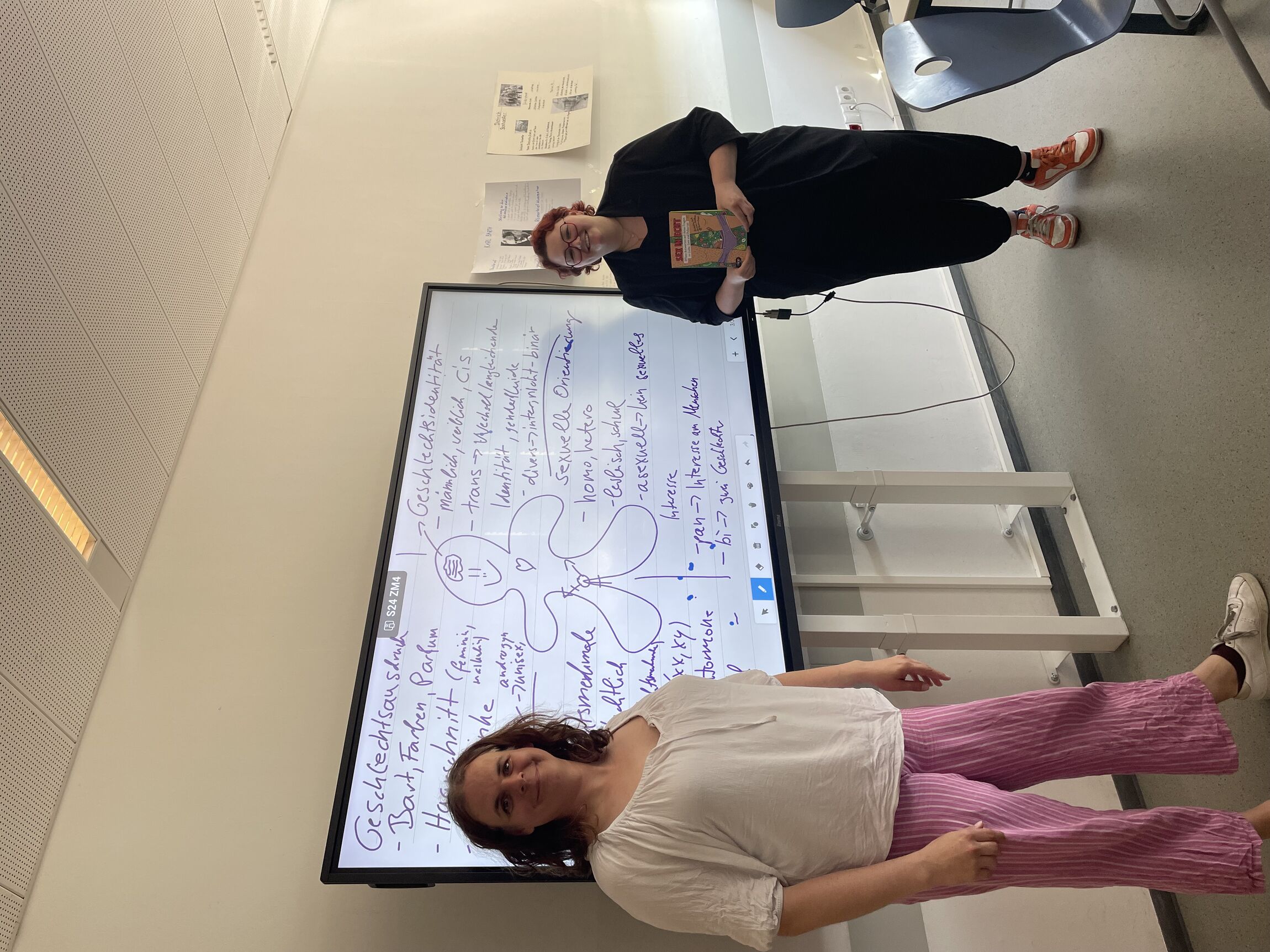 Organisiert von der Schulsozialarbeit waren in der letzten Woche Leo Dietz von der Caritas in Münster und Rebecca Broermann vom KCM e.V. (Verein für queeres Leben in Münster) bei uns an der Schule, um mit den 10. Klassen den Workshop „Geschlechtliche Identitäten und sexuelle Orientierung“ durchzuführen.