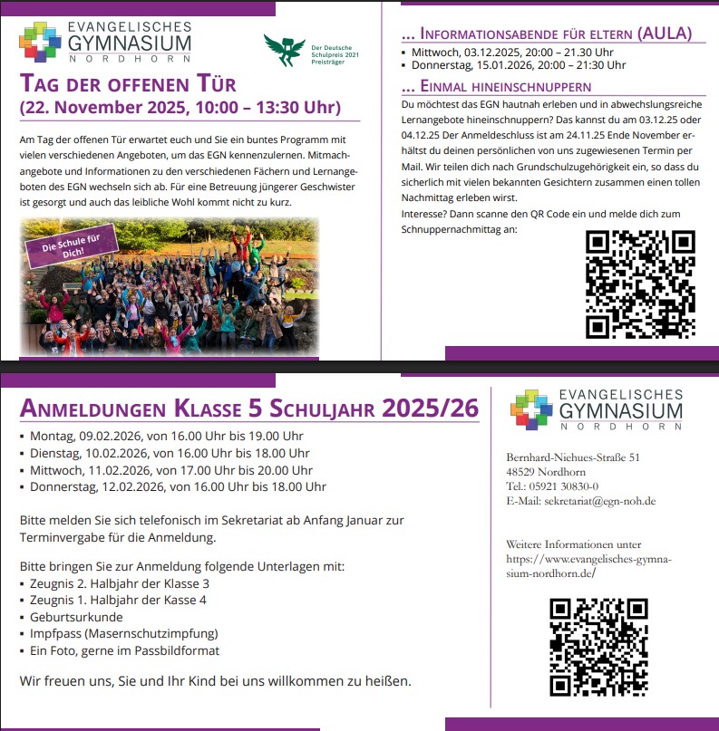 Infoabende, Schnuppernachmittag und Anmeldung neue 5er