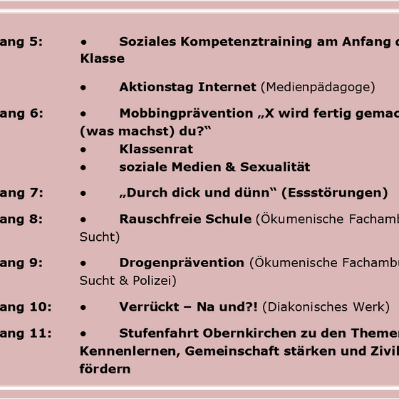 - Soziales Kompetenztraining am Anfang der 5. Klasse