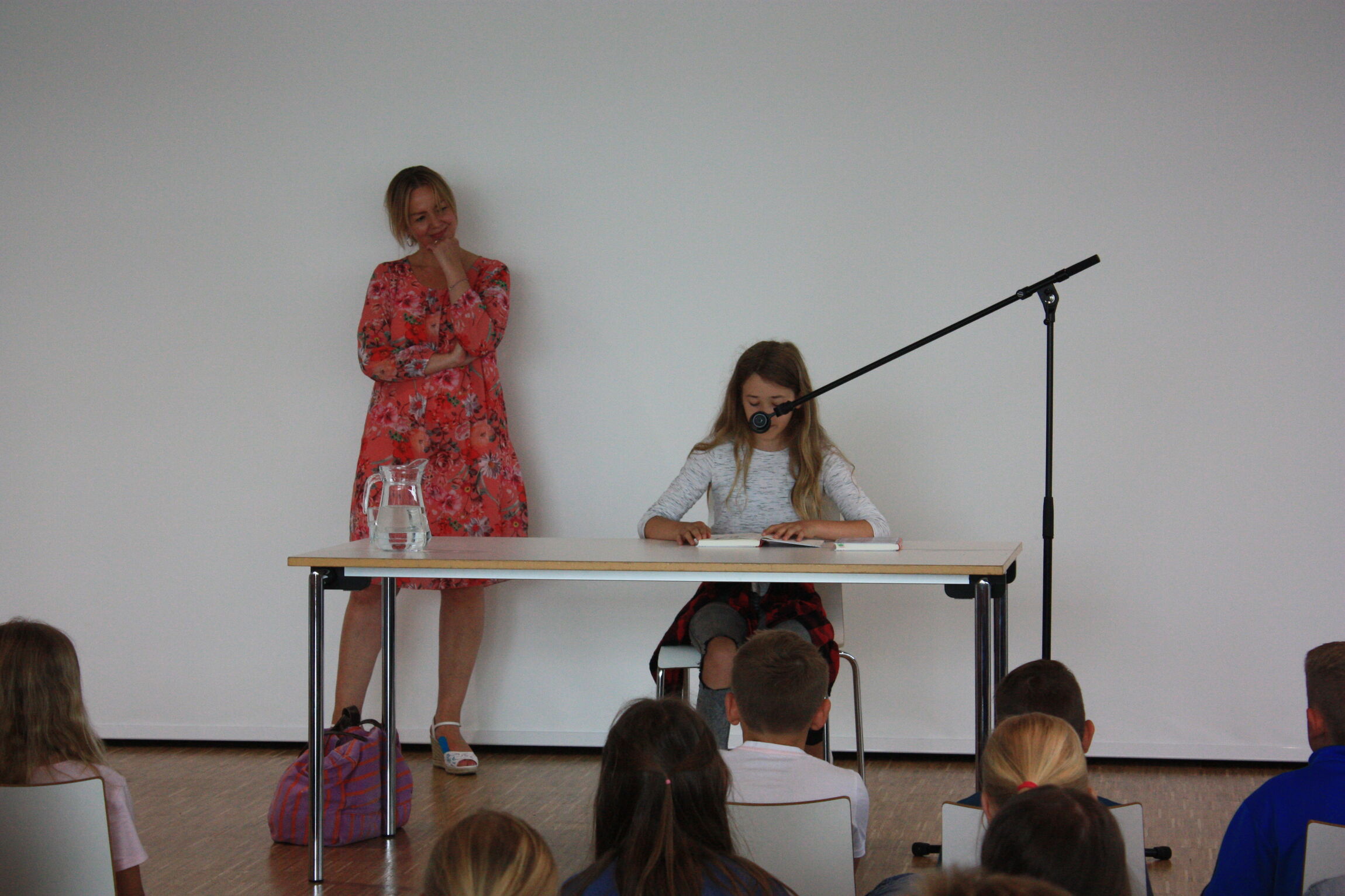 Kurz vor den Ferien besuchte die Autorin Simone Buchholz das EGN, um aus ihrem aktuellen Jugendbuch "Johnny und die Pommesbande" vorzulesen. Mit großer Spannung wurde dieses Ereignis nicht nur von den fünften Klassen verfolgt, sondern auch von Helena Deppe, die durch ihren Sieg beim Kreisentscheid des Vorlesewettbewerbs die Veranstaltung für das EGN gewonnen hatte. So durfte sie auch die ersten Seite aus dem Jugendkrimi selbst vortragen und beeindruckte die Autorin, die sichtlich begeistert war, ihren Text einmal nicht selber lesen zu müssen. Anschließend übernahm Buchholz zunächst selbst das Vorlesen und kam anschließend mit den Schülerinnen und Schülern in ein Gespräch über ihr neuen Buch, in dem nicht nur die Spannung weiter aufgebaut, sondern die Geschichte auch fantasievoll weitergesponnen wurden. Sicherlich hat die Autorin so viele neue Leser gefunden, die bereits in den Sommerferien zu ihrem Buch greifen werden.