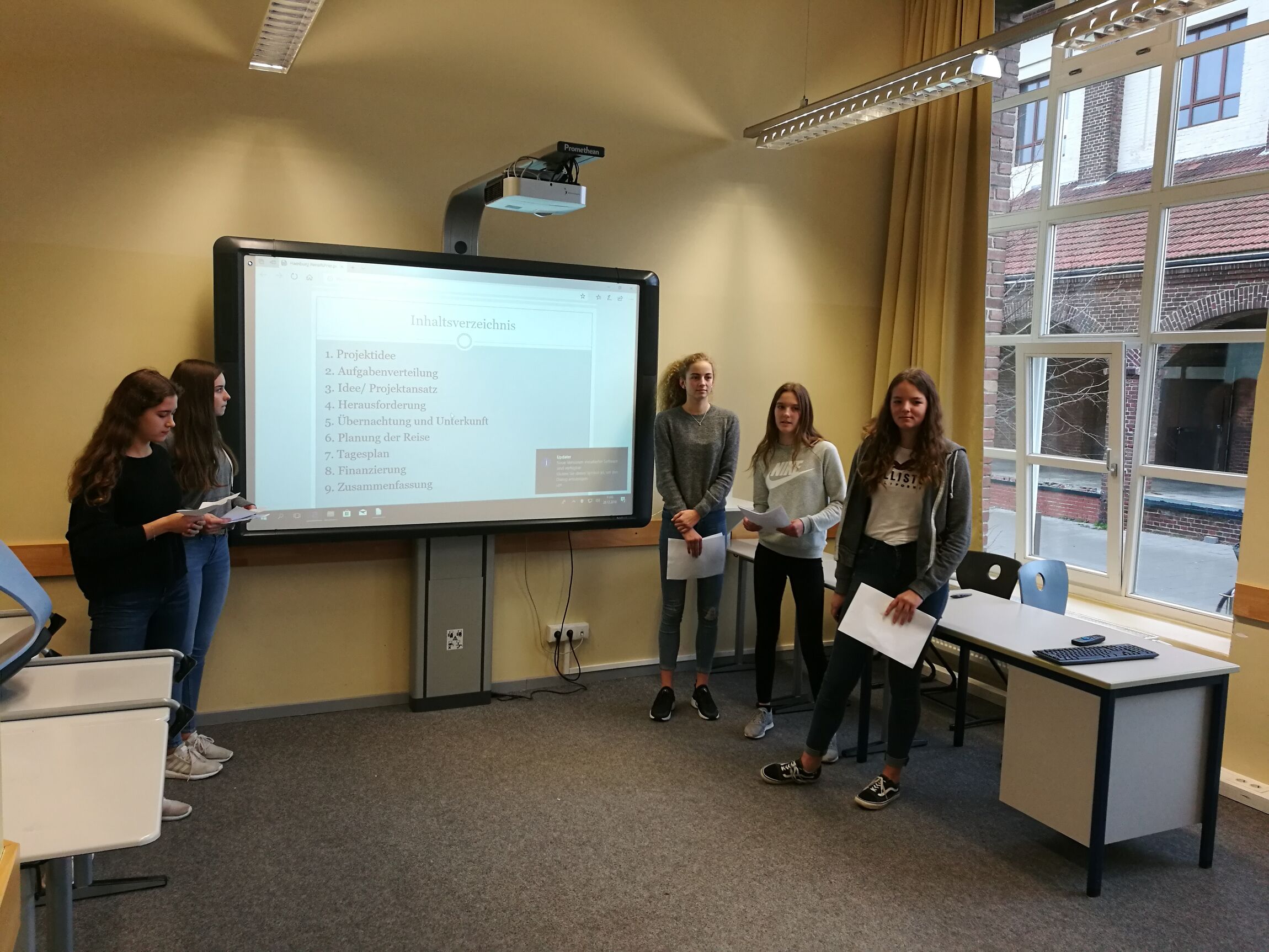 Am 19. und 20. Dezember war es nun endlich wieder so weit: Kurz vor den Weihnachtsferien sahen sich unsere Schülerinnen und Schüler mit der Aufgabe konfrontiert, in Kleingruppen ihre Projektideen – nach Monaten der Vorbereitung und Planung – einer siebenköpfigen Prüfungskommission vorzustellen, welche jeweils aus zwei Lehrkräften, zwei Eltern- sowie Schülervertretern und einer Begleitperson aus dem vergangenen Durchgang bestand. Es galt, eben jene Kommissionen von der eigenen Planung und Idee zu überzeugen, um diese vom 25.-29. März 2019 umsetzen zu dürfen.