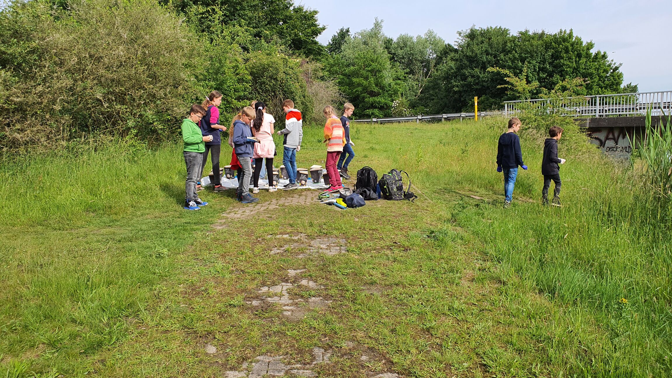 dokumentierten mit wissenschaftlichen Methoden Müll und Plastik. Makroplastik,  wie z.B. zerrissene Tüten, weggeworfene Plastikflaschen oder verknotete Angelschnüre sind relativ leicht zu entdecken. Für Mikroplastik, kaum wahrnehmbare Kleinstpartikel, stellte die Kieler Forschungswerkstatt extra ein Fangnetz zur Verfügung, um das Wasser der Vechte zu "sieben".