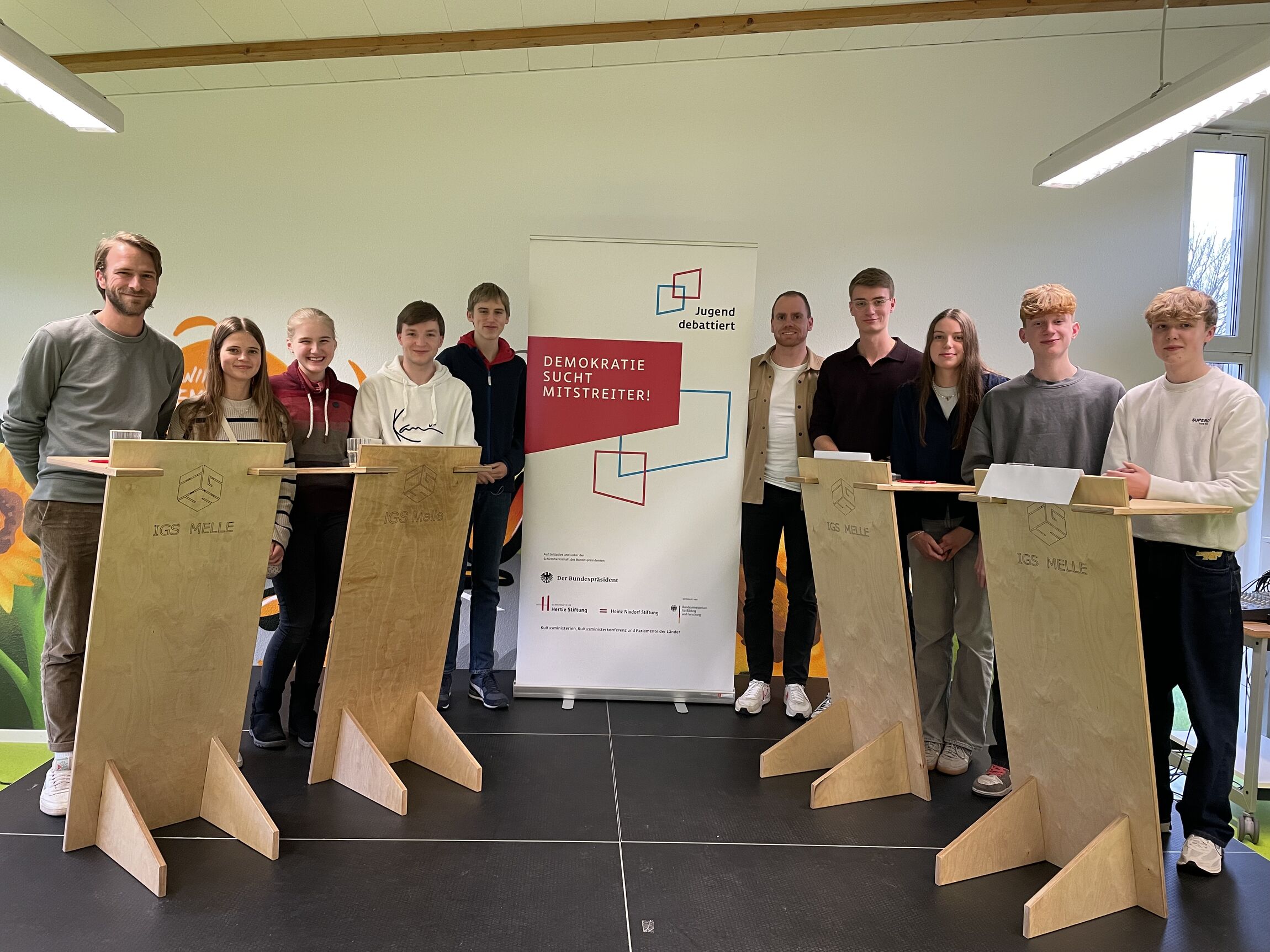 Am 30. Januar 2025 fand der diesjährige Regionalwettbewerb Jugend debattiert an der IGS Melle statt. Das qualitativ hochwertige Starterfeld bot den Schüler*innen auch in diesem Jahr wieder die Möglichkeit, ihre rhetorischen Fähigkeiten zu verbessern, sich mit Schüler*innen anderer Schulen zu messen und sich mit aktuellen gesellschaftspolitischen Themen auseinanderzusetzen.